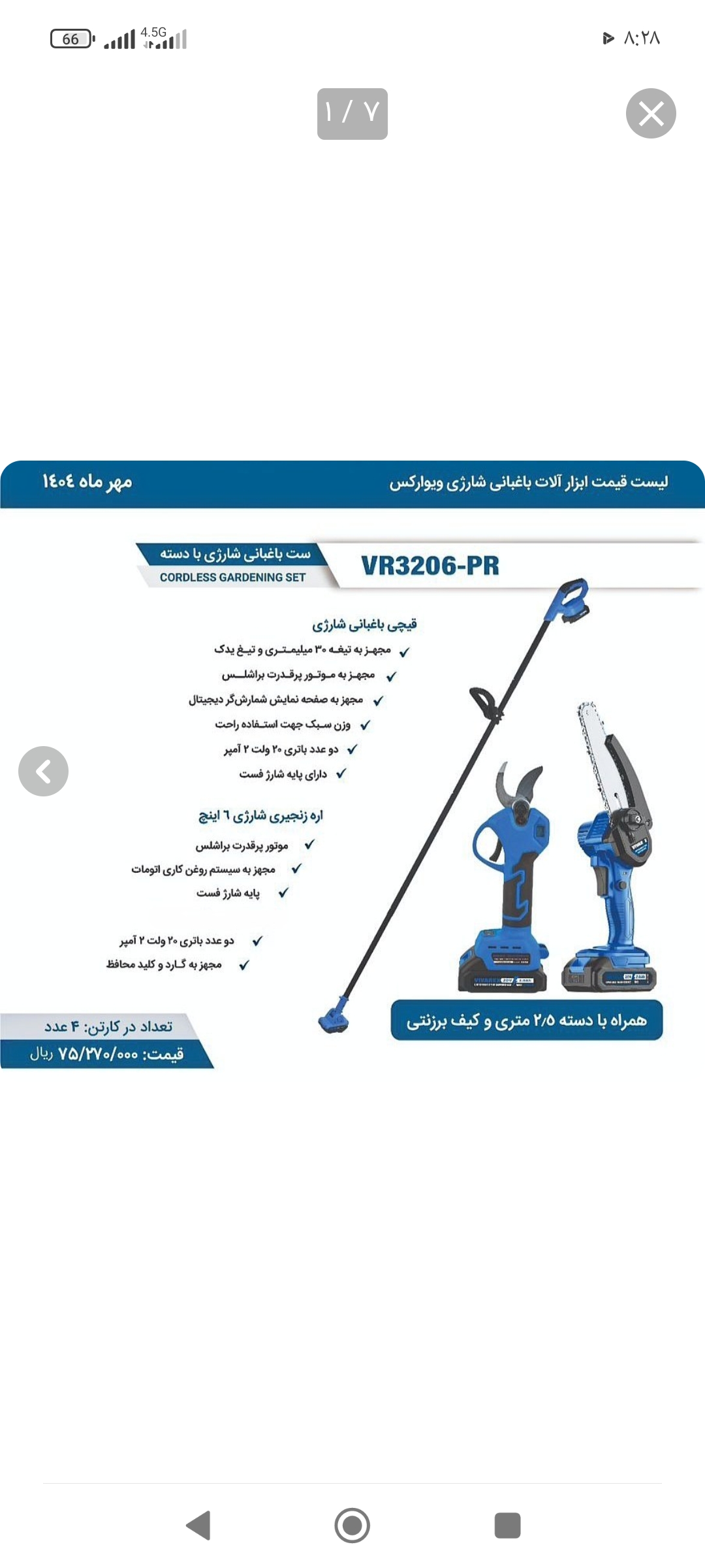 قیچی باغبانی و اره شارژی 20ولت دسته تلسکوپی VR3206-PR قابلیت پایه دونیم به هر دو هم قیچی هم اره